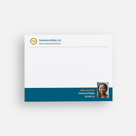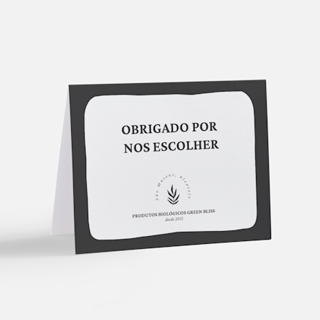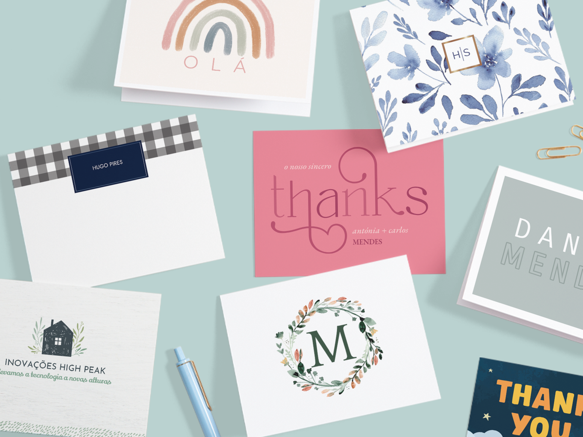 No entanto, os nossos modelos de design não são a sua única opção! Dê asas à criatividade com um cartão em branco: use o logótipo acabado de criar para a sua marca ou a sua fotografia favorita para complementar a sua nota de felicitação e torne-o 100% seu. Se tiver dúvidas ou precisar de assistência com o design durante o processo, pode contar com a ajuda da nossa premiada equipa. Quando terminar, terá a opção de escolher os seus envelopes preferidos: a condizer com o cartão, clássicos, coloridos ou totalmente brancos e gratuitos. Depois, basta finalizar a sua encomenda e já está! Embalaremos e enviaremos os seus cartões prontos a estrear, para começarem a realizar a sua função de criar ligações com as pessoas mais importantes para si.