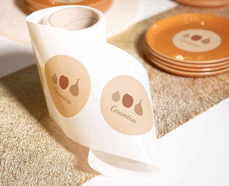 Crie um visual profissional comum a todos os produtos e embalagens com autocolantes e etiquetas personalizados.
