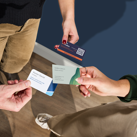 Sabemos que a preparação para feiras comerciais pode ser difícil pela multiplicidade de tarefas envolvidas, por isso simplificámos o processo de encomenda. Utilize os nossos modelos de design gratuitos para agilizar o processo ou carregue os seus próprios elementos gráficos para um visual totalmente personalizado. Escolha os seus produtos, as quantidades e selecione a velocidade de entrega – rápida, standard ou económica. A VistaPrint encarrega-se do resto, imprimindo profissionalmente e enviando os seus artigos promocionais diretamente para a sua porta. Com materiais de qualidade que duram evento após evento e prazos de entrega rápidos, que podem ser de apenas 3 dias úteis, entrará na feira ou exposição comercial a postos para fazer valer cada interação.