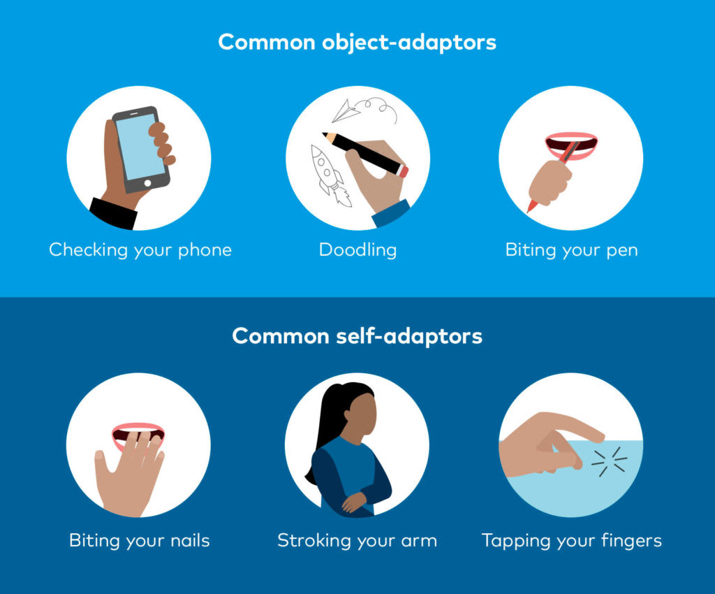 Os adaptadores são comportamentos como mexer no cabelo ou brincar com uma caneta. São respostas naturais a reações negativas que temos para connosco ou com os outros.
