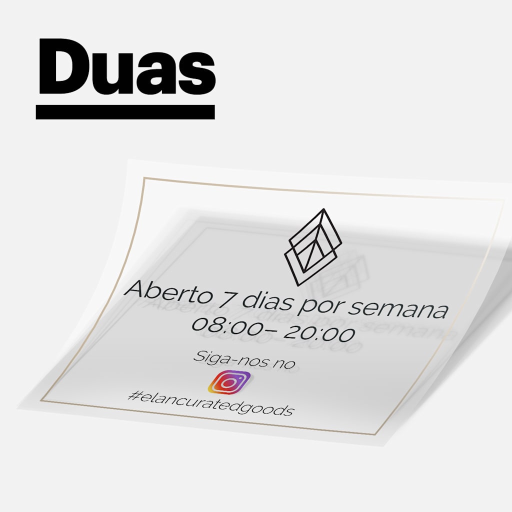 Um decalque do logótipo da sua loja é uma excelente forma de acrescentar interesse visual e reforçar a sua marca. Os decalques servem também um propósito funcional, permitindo-lhe partilhar informações essenciais com os potenciais clientes (como o horário de funcionamento da sua loja, os contactos e os perfis das redes sociais). São o melhor de dois mundos e essenciais para o design da sua montra.
