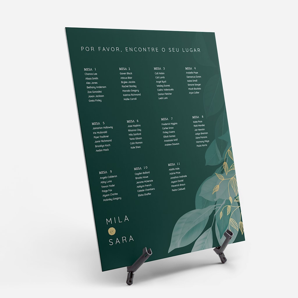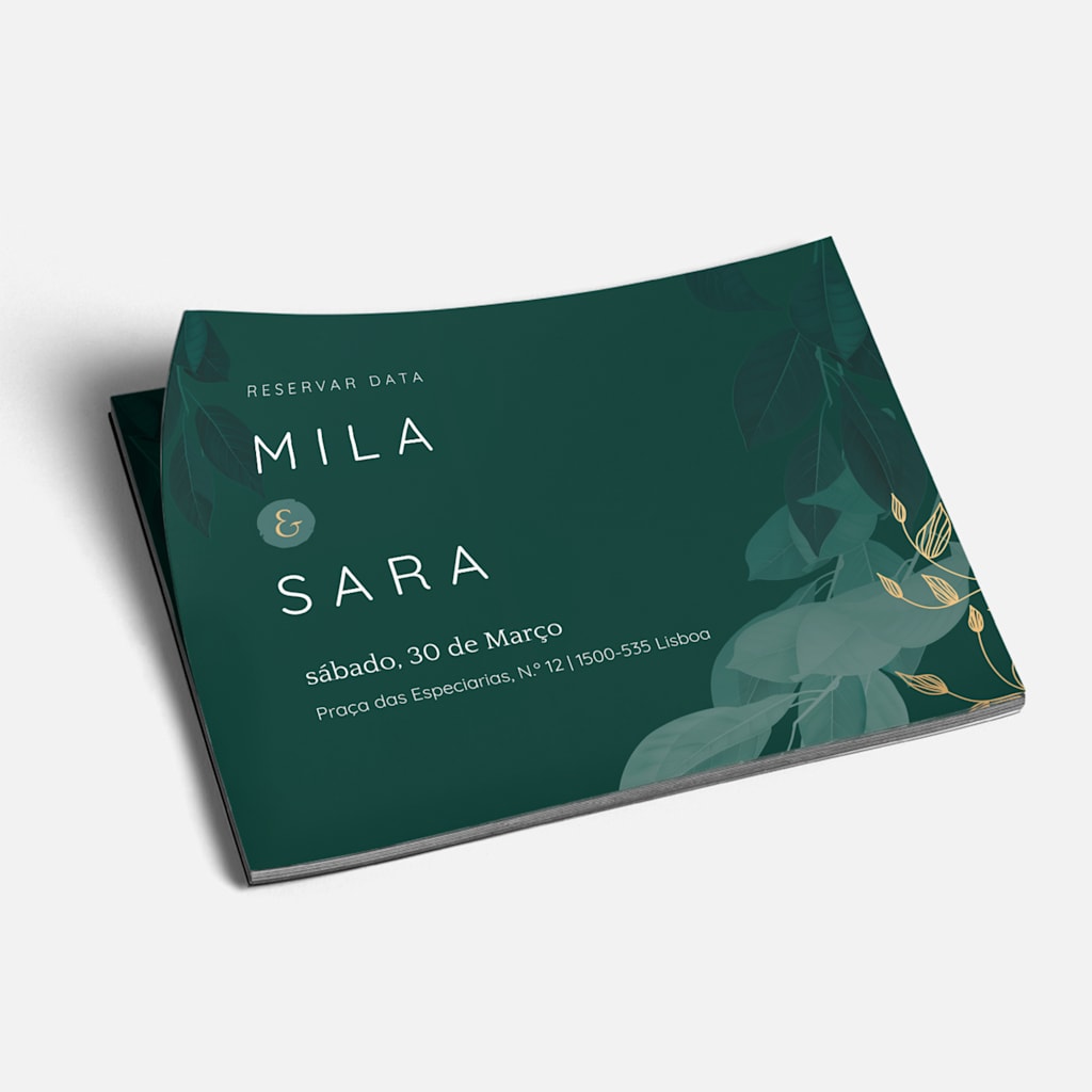 Se quiserem cortar nos custos do casamento, pensem em coisas que podem ser criadas por vocês ou com uma pequena ajuda. Provavelmente irão precisar de cartões de identificação para colocar nas cadeiras e marcadores de lugares, programas e menus. Comecem por usar um modelo ou façam o upload do vosso próprio design para criar uma decoração personalizada. A sinalética de boas-vindas é outro recurso acessível e útil para definir o tom do vosso dia especial, quer optem por um espelho pintado à mão ou por uma placa de acrílico impressa. Pensaram num hashtag único para o dia do casamento? Exibam-no na sinalética escolhida para incentivar os convidados a utilizar o hashtag quando partilharem fotografias nas redes sociais. Outros artigos que podem ser vocês mesmos a fazer antes do casamento são os sacos de boas-vindas, as lembranças ou os números de mesa.
