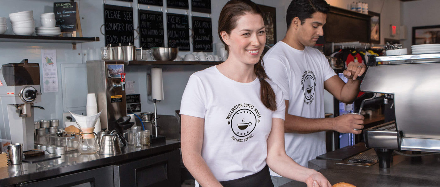 É muito importante ter uma equipa verdadeiramente alinhada com os seus valores, seja com o seu compromisso para com o serviço de apoio ao cliente ou com as suas políticas relativas à utilização de determinados materiais, métodos ou abordagens nos produtos e serviços que oferece. Ao usarem roupas com a sua marca, os membros da equipa conseguem interiorizar os seus valores e assumir verdadeiramente o papel de representar o seu negócio quando estão a trabalhar – sentindo-se também parte de uma equipa e de uma comunidade.