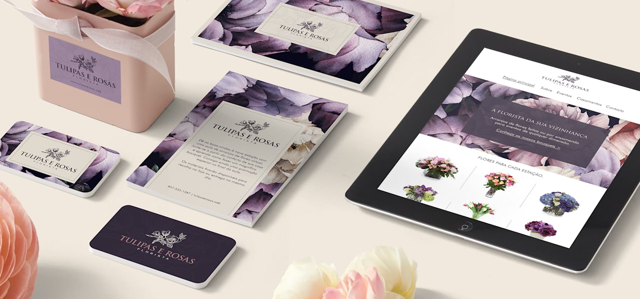 Eis um olhar mais atento daquilo que a Tulipas & Rosas utiliza para criar uma identidade de marca consistente (online e offline) para ter um visual credível em todas as suas iniciativas de marketing.