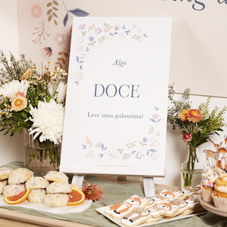 Sim. No nosso estúdio de design, pode personalizar qualquer acessório para festas que escolher. Um póster personalizado com o rosto da princesa aniversariante, bases para copos com a data do seu casamento ou carimbos iguais ao desenho do convite, as opções são infinitas. Basta personalizar com fotografias, texto ou ambos, rever a sua criação e nós tratamos do resto.