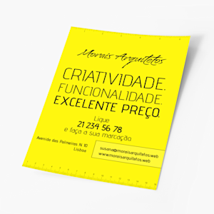 O processo de encomenda é muito simples: selecione o tamanho pretendido (B2, B1, A2 ou A1) e escolha combinações de verde, laranja ou amarelo para criar uma base marcante. Os pósteres são impressos em papel de 90 gm2 com tinta preta intensa para garantir um elevado contraste, com acabamentos fluorescentes de alta qualidade para que se destaquem em qualquer ambiente. Use em espaços interiores para maximizar a durabilidade ou afixe ao ar livre em locais abrigados para aumentar a visibilidade depois de anoitecer.
