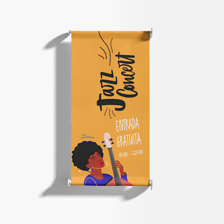 Acrescente o seu logótipo a bandeiras elegantes, fáceis de criar e montar.